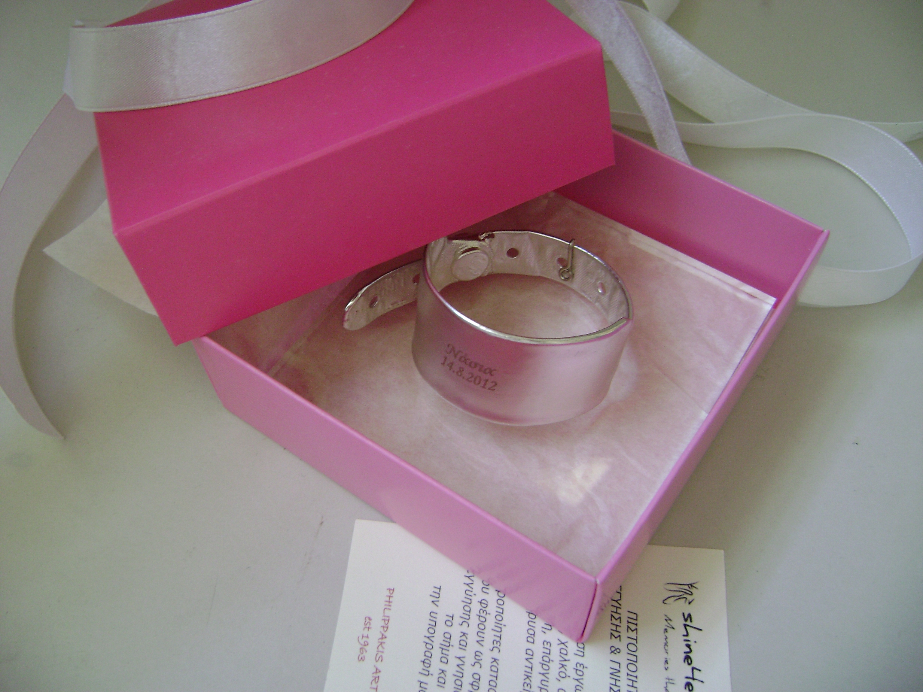 Σκέφτηκες ποτέ από όλα αυτά που κρατάμε από τα μωράκια μας, ότι θα μπορούσες να δημιουργήσεις ένα όμορφο αναμνηστικό / δώρο?! Το οποίο θα μπορούσε ακόμα και να διακόσμηση την πιο όμορφη γωνιά του σπιτιού σου?! Ένα από αυτά είναι και το βραχιόλι του μαιευτηρίου της μαμάς, που μας ζήτησε η φίλη μας απο την Θεσσαλονίκη να το “ντύσουμε” με μέταλλο αστραφτερό, να χαράξουμε πάνω όνομα και ημερομηνία, για να φτιάξει το δικό της μοναδικό Shine4ever memorabilia!