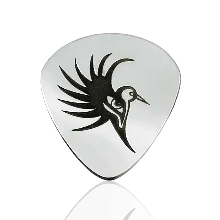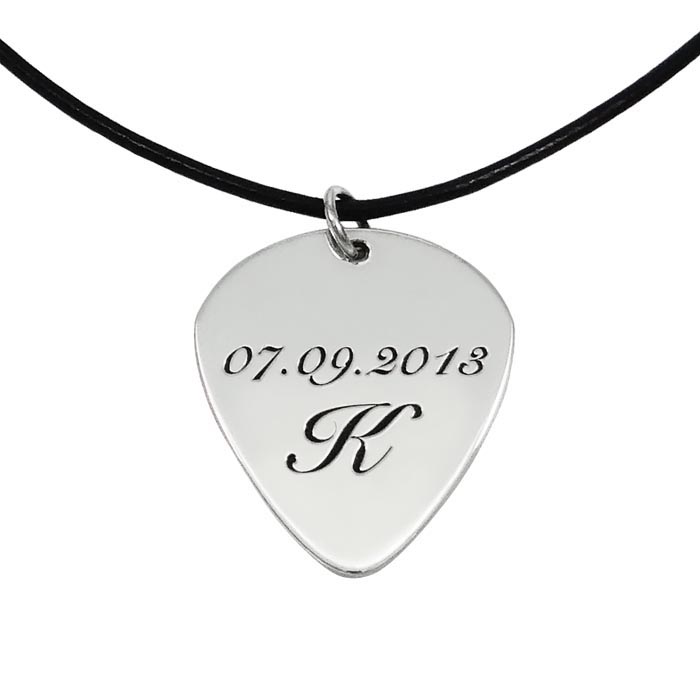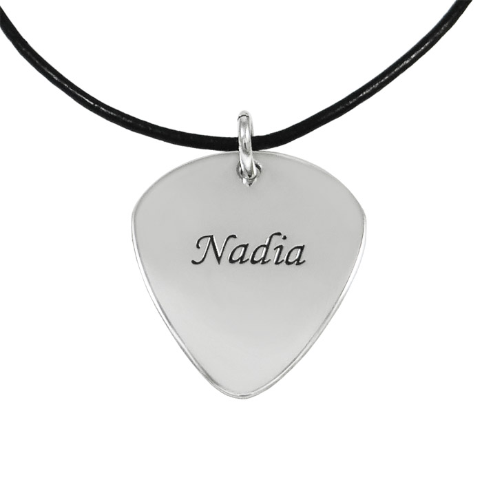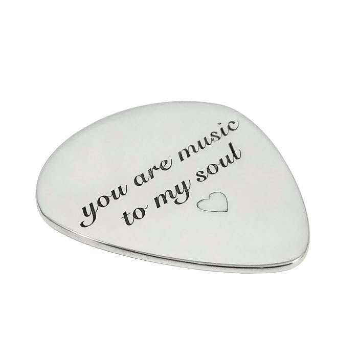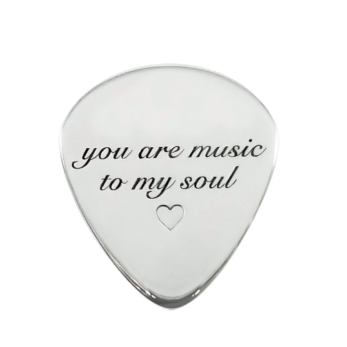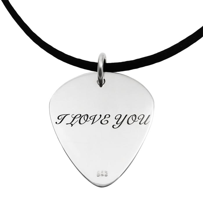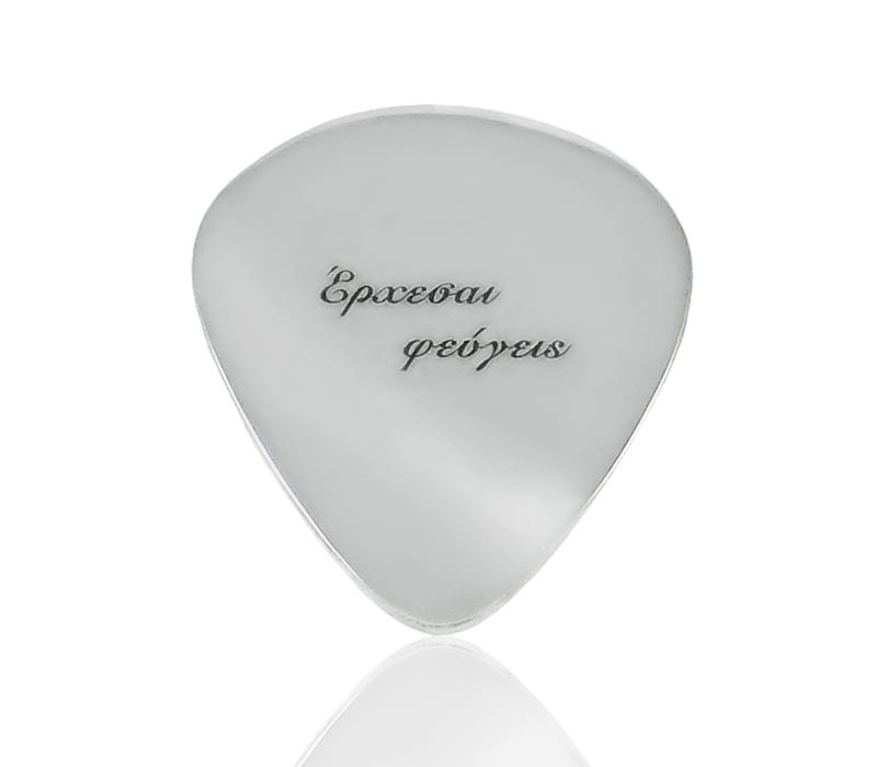 Create your own solid sliver guitar pick! We can engrave, an image, a personal message, a name, a date, what you wish, by selecting one of the fonts.