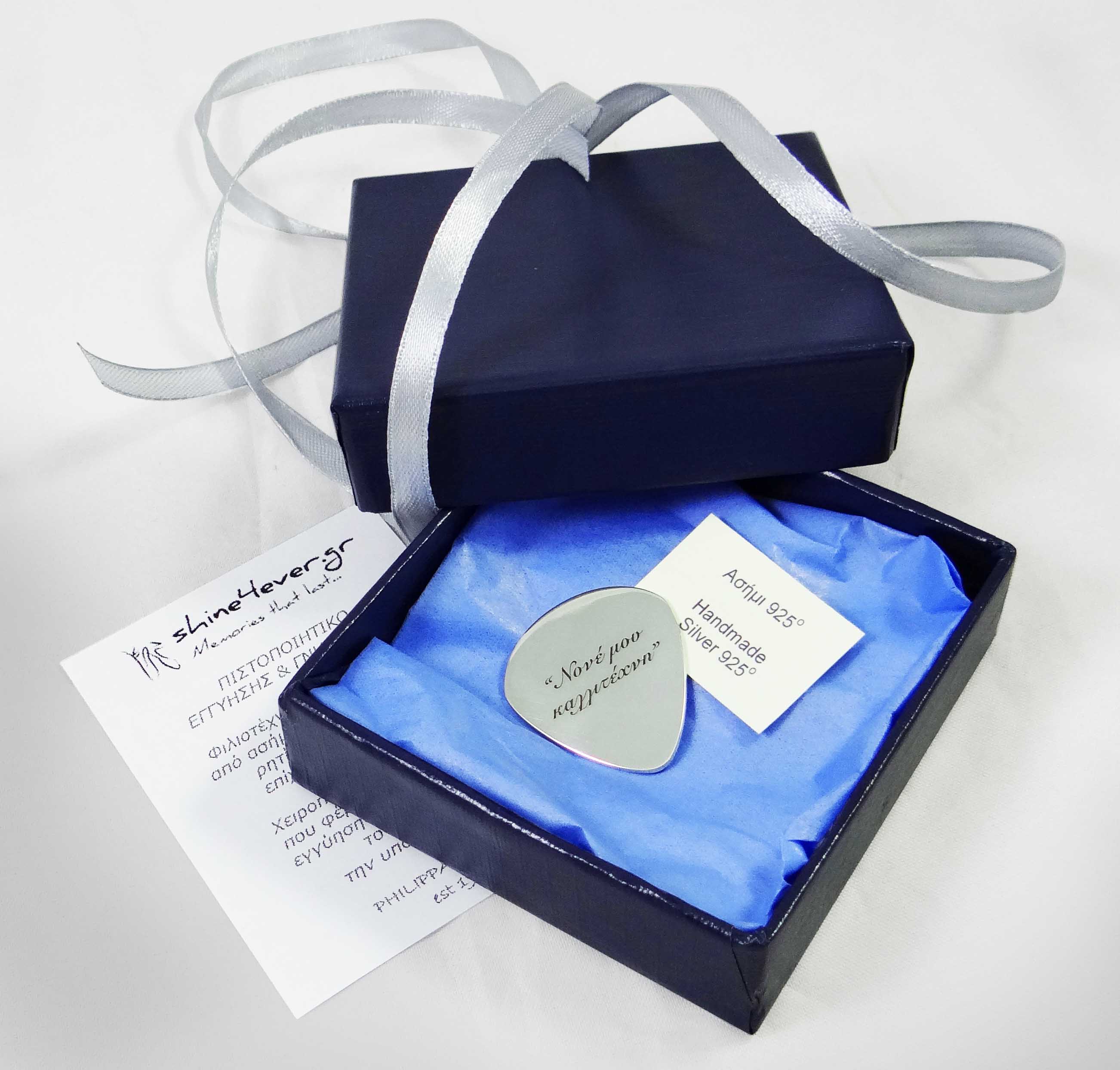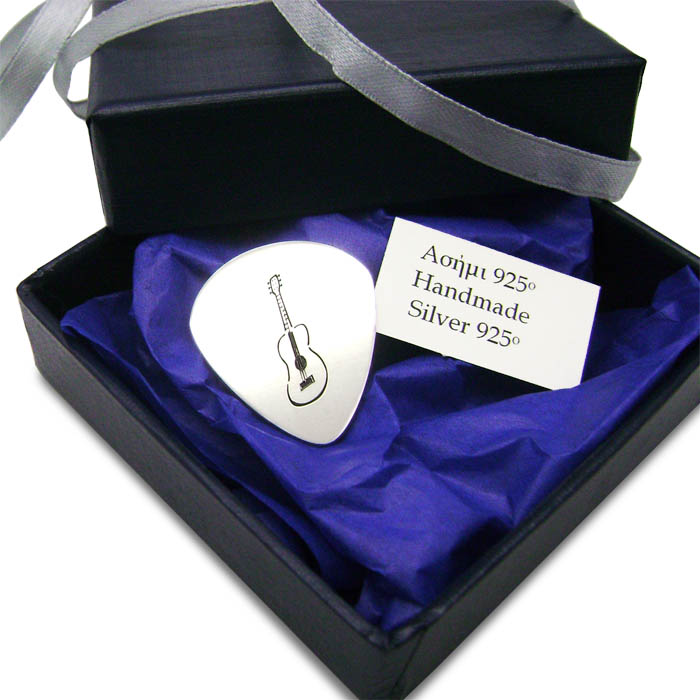 The solid silver guitar pick is totally handmade in our workshops and is offered in a gift box and accompanied by a certificate of authenticity and guarantee.