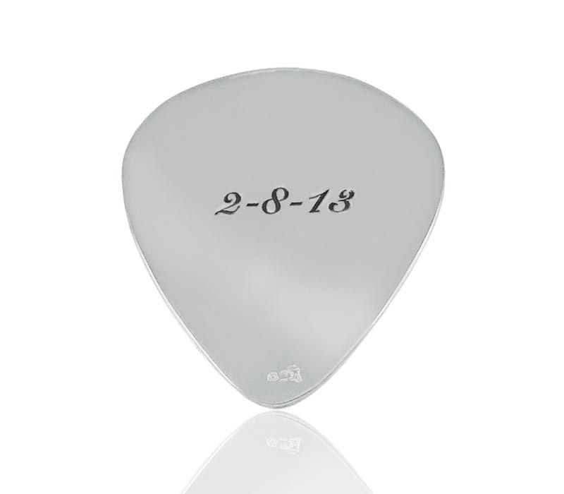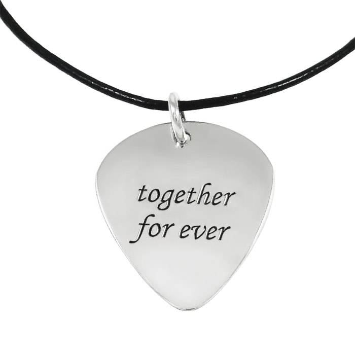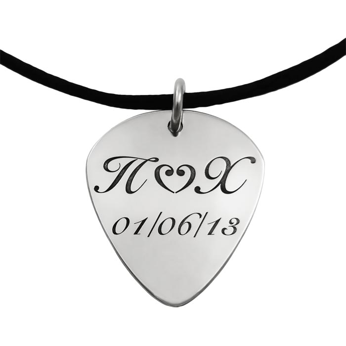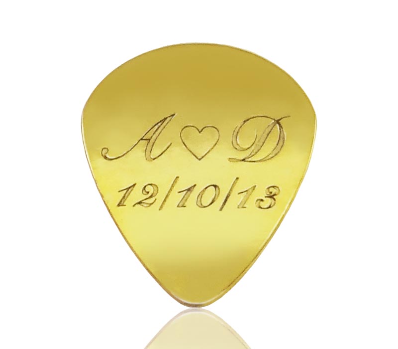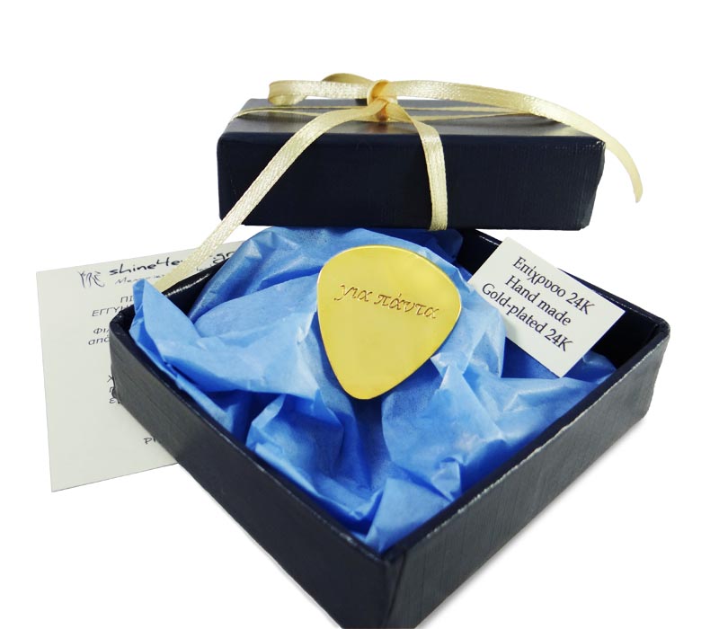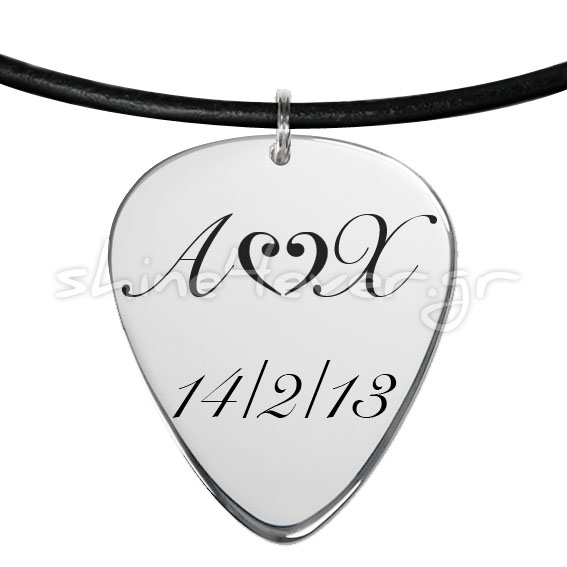 Δημιουργείστε ένα μοναδικό και ιδιαίτερο δώρο, μια ασημένια πένα κιθάρας, που θα κάνει εντύπωση και που μπορεί να γίνει και ακόμα πιο προσωπικό! Μπορεί να χαραχθεί μια λέξη, ένας στίχος, μια ημερομηνία, ακριβώς αυτό που επιθυμείτε, επιλέγοντας και τη γραμματοσειρά. Μπορεί να γίνει κρεμαστή, αλλά και μπρελόκ. Υπάρχει δυνατότητα επιχρύσωσης σε διάλυμα χρυσού 24 καρατίων.